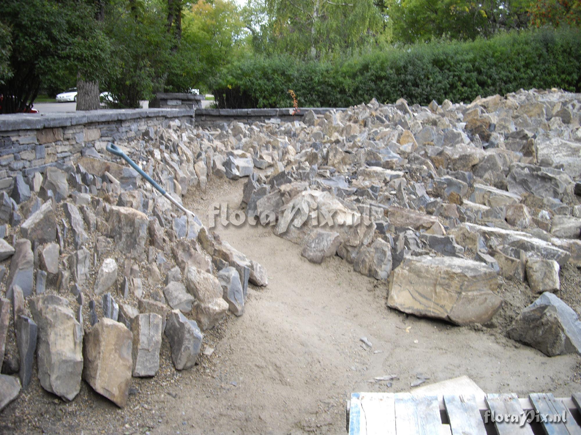 : Stephanie Ferguson's front rock garden in Calgary, Alberta. Under construction, September 10, 2010.