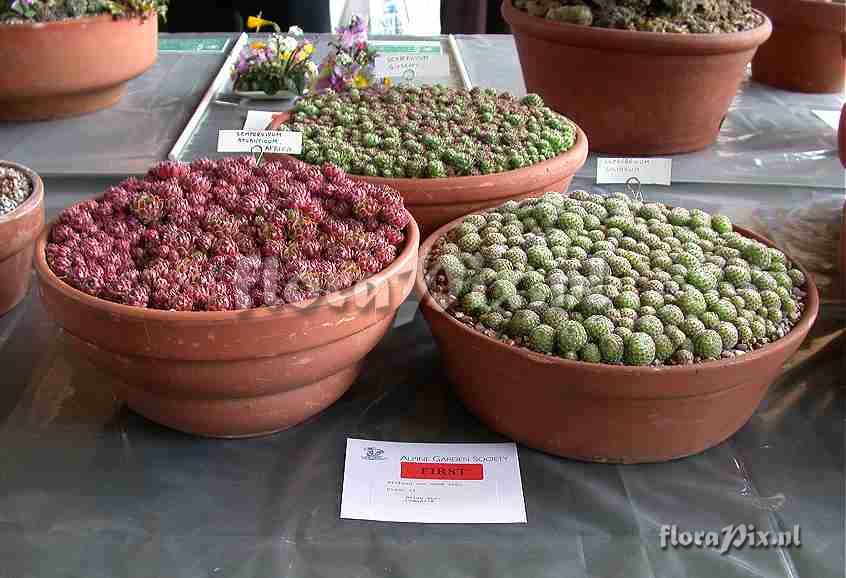 : Three pans of Sempervivum
