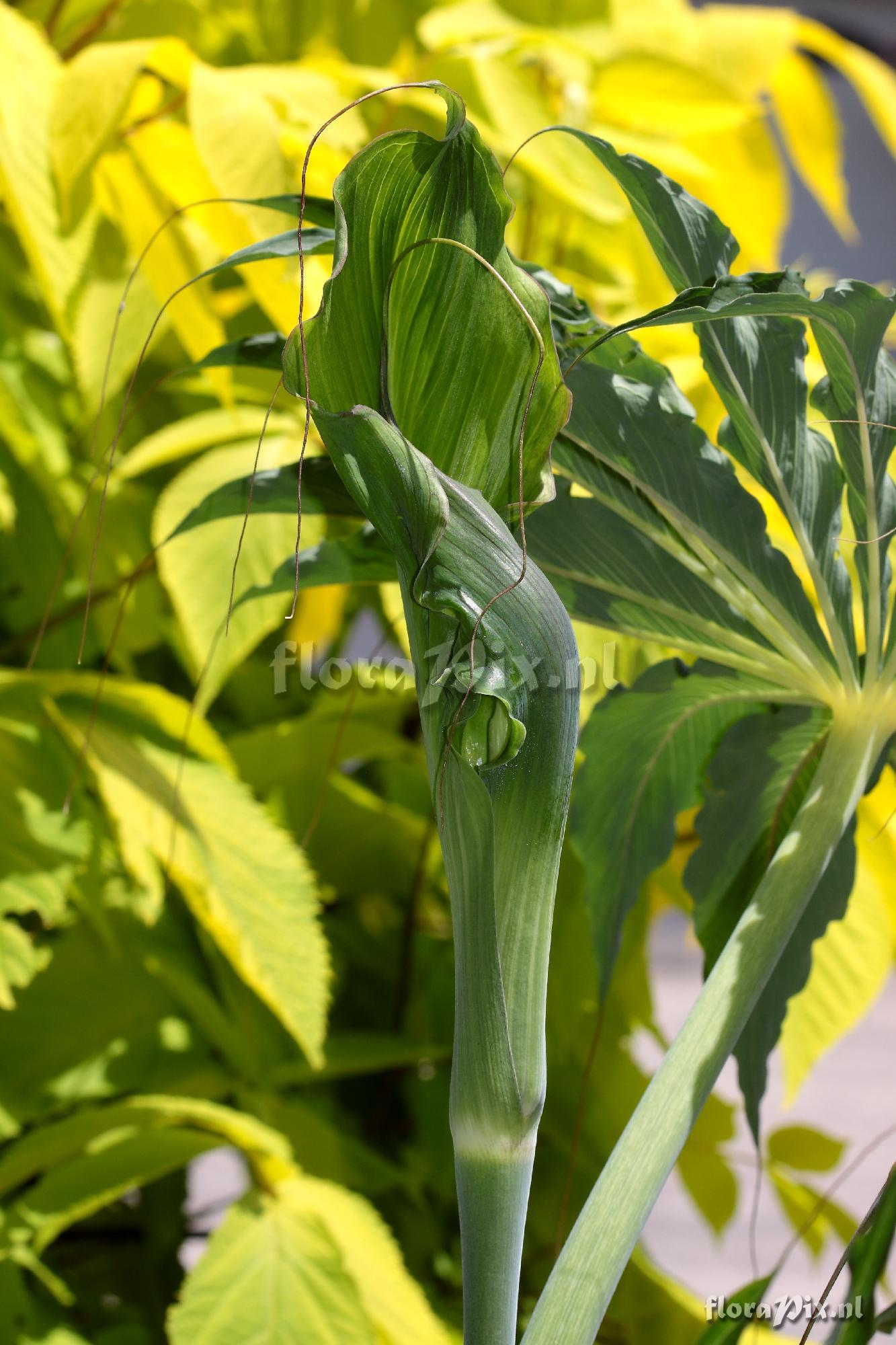 (Dimension: 1363 x 2050 pixels - Counter: 8993) Arisaema consanguineum 'Poseidon' Photographer: Erick Adams Note: It formed a spathe on one side and a leaflet on the other. (Sent: Arisaema-l@nic.surfnet.nl)