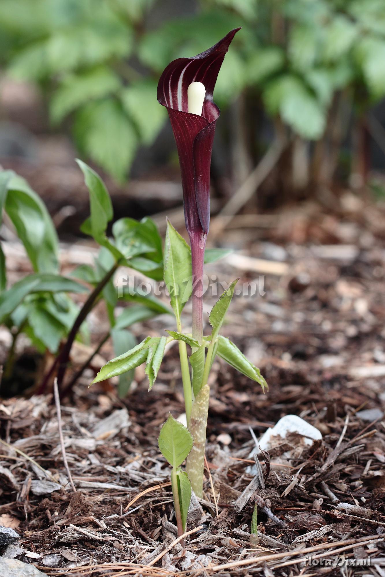 (Dimension: 1363 x 2050 pixels - Counter: 14399) Arisaema engleri x sikokianum Locality: USA - Rhode Island - East Greenwich Photographer: Erick Adams Note: In 2007 I managed to pollinate my last living A. engleri with A. sikokianum pollen before it expired. The following year only 13 seedlings emerged. As of this year (2012) only 3 of these F1 plants are left and the largest has finally bloomed. (Sent: Arisaema-l@science.uu.nl)