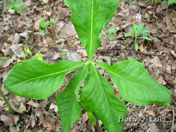 (Dimension: 598 x 476 pixels - Counter: 8091) Arisaema quinatum Photographer: Aaron Floden Note: early leaf, near the middle of May