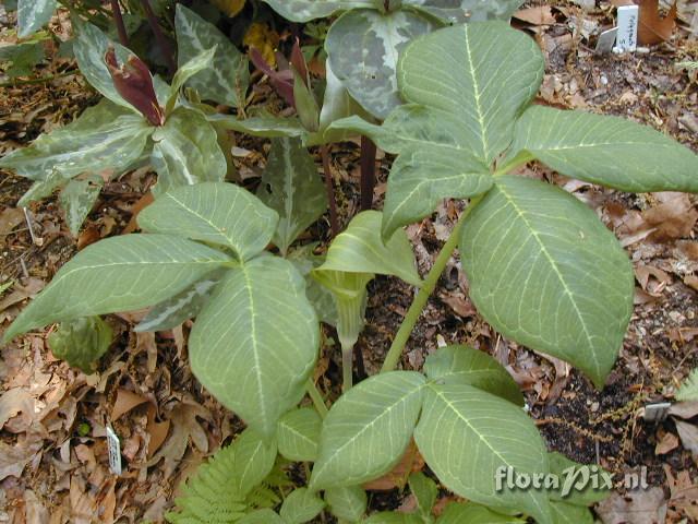 (Dimension: 670 x 530 pixels - Counter: 7872) Arisaema triphyllum Photographer: Jim McClements Note: form with 5 leaflets (not quinatum) good white veining