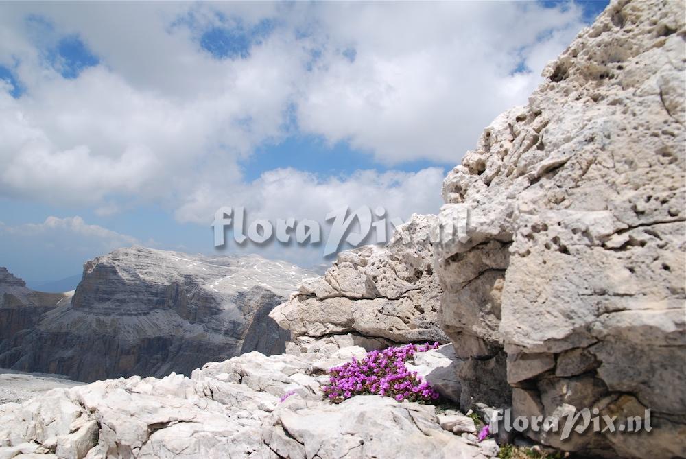 Saxifraga oppositifolia under boulder