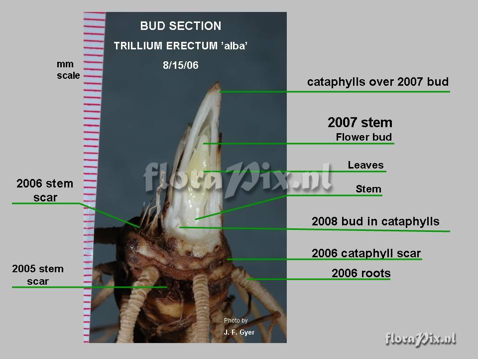 (Dimension: 990 x 770 pixels - Counter: 5239) Trillium erectum apical bud Photographer: J. F. Gyer Note: Normal single stem apical bud of a rhizome of Trillium erectum