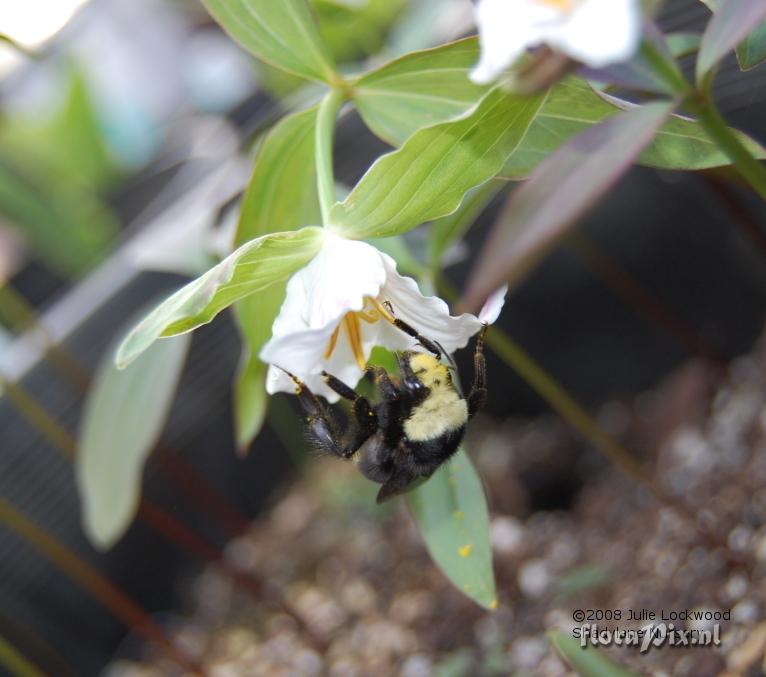 (Dimension: 796 x 727 pixels - Counter: 5894) Trillium pusillum Photographer: Julie Lockwood Note: The bumblebee has this T. pusillum almost bent double.